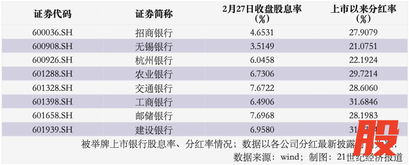 本批被举牌的上市银行截至2月27日收盘股息率平均水平高达6.22%,与此同时,这些银行截至2024年的上市以来分红率平均水平达到27.58%,较其他行业展现出更为稳健的分红政策和可持续性。